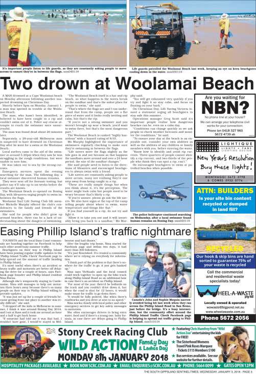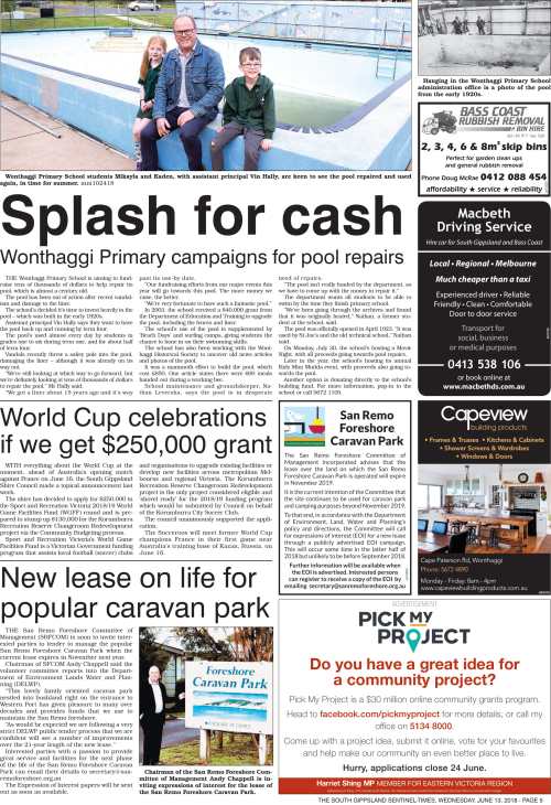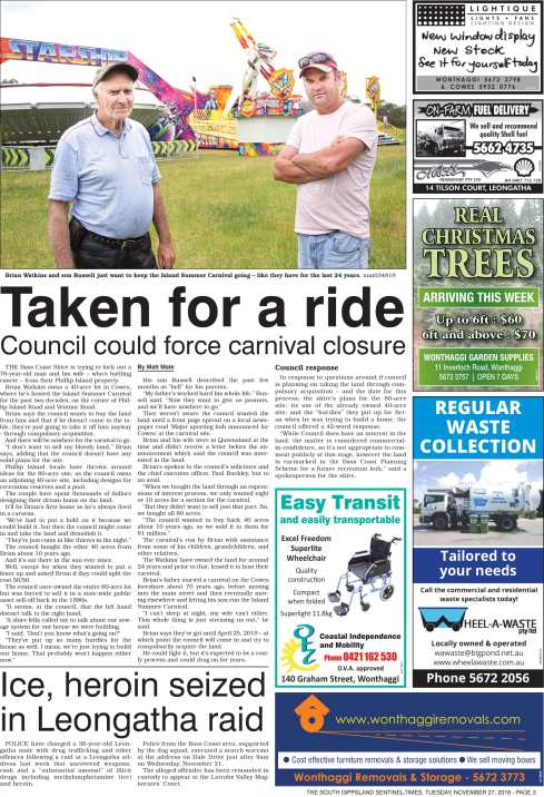 Here are some of the front page articles from my work at the South Gippsland Sentinel-Times in 2017 and 2018: